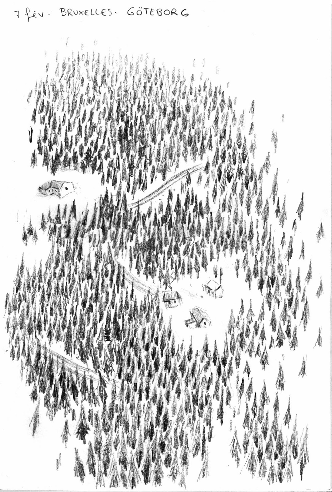Et j'ai eu le temps de dessiner tooouuuut les petits sapins en attendant Olivier qui avait loupé son avion...